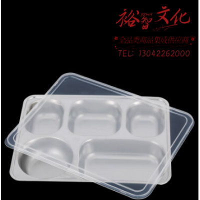 首页 > 用具 > 餐具 > 不锈钢餐盘学校食堂分格快餐盘(201材质+塑料盖)