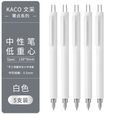 KACO菁点中性笔0.5mm黑色按动笔低重心签字笔考试刷题水笔白杆5支/盒 SKU:yzwhyp102719