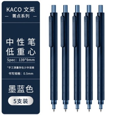 KACO菁点中性笔0.5mm子弹头蓝黑色按动处方签字笔水笔5支/盒K1028 SKU:yzwhyp102720