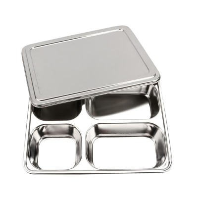 首页 > 用具 > 餐具 > 不锈钢餐盘学校食堂分格快餐盘(304材质+304钢盖)