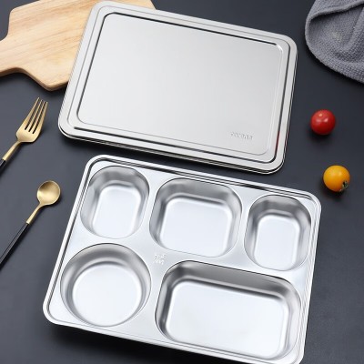 首页 > 用具 > 餐具 > 不锈钢餐盘学校食堂分格快餐盘(201材质+201钢盖)