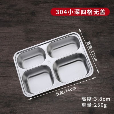 不锈钢餐盘学校食堂分格快餐盘(201材质+塑料盖)