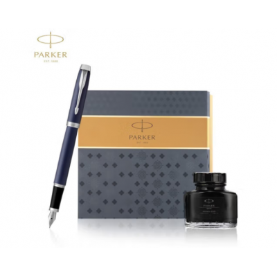 派克(PARKER)钢笔 签字笔 商务办公送礼 男女生日礼物 学生练字 IM蓝色白夹墨水笔+墨水礼盒 SKU:yzwhyp303961
