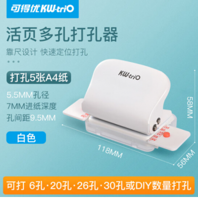 可得优(KW-triO)A520孔 B526孔 A430孔多孔打孔机 装订活页本打孔器 简约白6孔99H9 SKU:yzwhyp102973