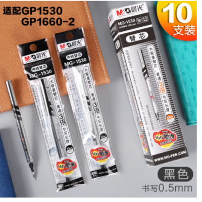 晨光(M&G)MG1530 0.5mm黑色大容量葫芦头中性笔笔芯 10支/盒 SKU:yzwhyp304264