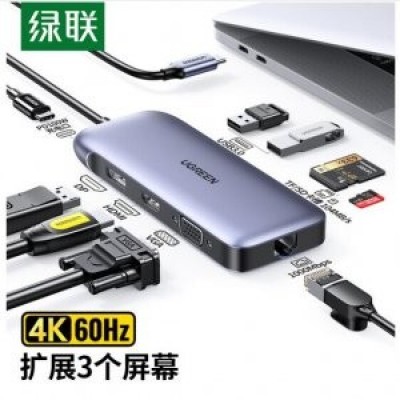 绿联70301 Type-C扩展坞 USB-C转DP雷电3转换器 HDMI转接头VGA读卡分线器 9合1 SKU:yzwhyp103051