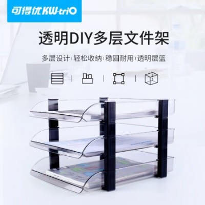 可得优(KW-triO)叠加式文件架选择层数桌面透明文件架子多层文件栏文件筐文件 3层【透明】WL-02 SKU:yzwhyp103099