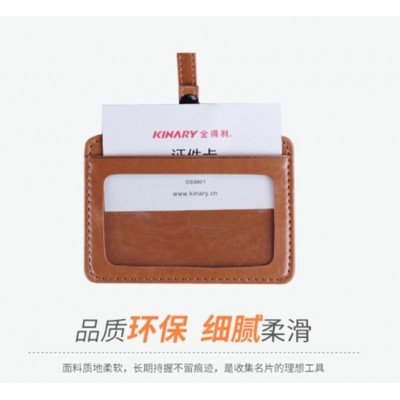 金得利(KINARY) 高级皮纹证件卡套带挂绳 OS9001 横式 浅咖