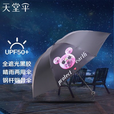 天堂伞 三折叠晴雨伞57cm*8骨全遮光黑胶防晒太阳伞遮阳伞 31847E粉色 SKU:yzwhyp304522