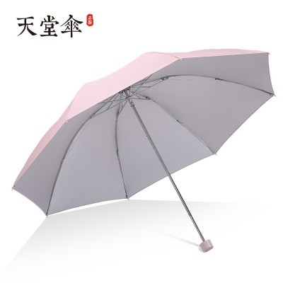 天堂伞雨伞防晒太阳伞遮阳伞小巧便携男女晴雨两用折叠广告伞定制印logo 336T银胶(270克)-浅粉色 SKU:yzwhyp304574