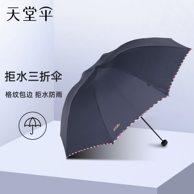 天堂伞 雨伞三折叠晴雨两用便携商务8骨雨伞 藏青 57CM*8骨 SKU:yzwhyp304587