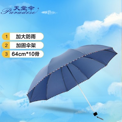 天堂伞 加大加固64cm*10骨三折晴雨商务伞3311E碰兰灰色 SKU:yzwhyp304615