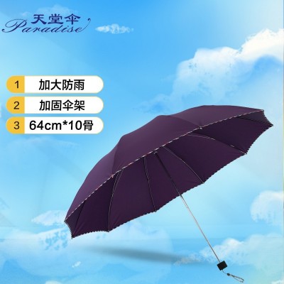 天堂伞 加大加固64cm*10骨三折晴雨商务伞3311E碰深紫色 SKU:yzwhyp304616