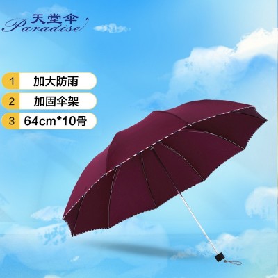 天堂伞 加大加固64cm*10骨三折晴雨商务伞3311碰酱红色 SKU:yzwhyp304617