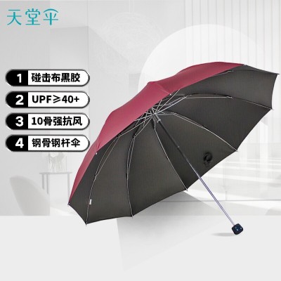 天堂伞 三折加大61cmX10骨黑胶晴雨伞防晒男女通用商务大伞太阳伞 33188E2酱红 SKU:yzwhyp304621