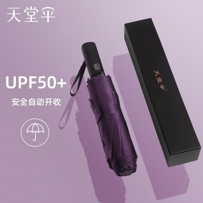 天堂伞 晴雨伞三折叠黑胶防晒遮阳伞升级安全自开收自动伞男女 深紫 60CM*8骨 SKU:yzwhyp304633