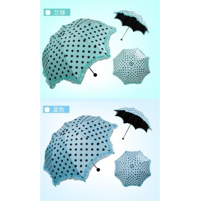 天堂伞 三折雨伞黑胶防晒晴雨伞公主伞55cm*8骨 圆点果绿 SKU:yzwhyp304640