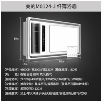美的(Midea)浴霸风暖静音双核电机暖风机卫生间浴室浴霸灯取暖器换气集成吊顶灯具M0124-J SKU:yzwhyp304690