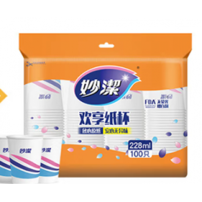 妙洁 纸杯一次性杯子 100只装228ml 加厚型 SKU:yzwhyp304707