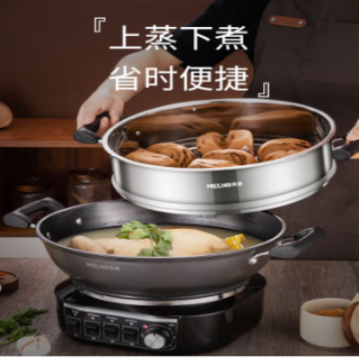 首页 > 电气设备 > 烹调电器 > 美菱(MeiLing) 电炒锅升级单旋钮定时多功能电热锅家用电锅一体锅铸铁锅电煮锅电蒸锅多用途锅 【定时款】34cm一锅双笼(适合5-7人) SKU:yzwhyp103400