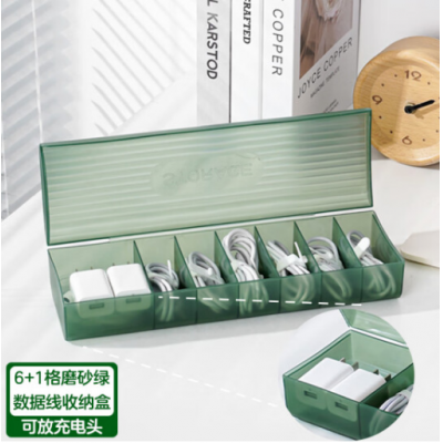 金隆兴2821 桌面数据线收纳盒手机充电器充电线整理分格电源线U盘小物件收纳 绿色磨砂款 SKU:yzwhyp103403