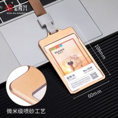 金隆兴1030 铝合金证件卡套 员工工牌卡套 金属胸卡工作证胸牌 竖式金色 SKU:yzwhyp103420