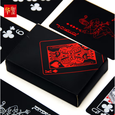 华圣牌扑克 PVC扑克牌魔术 可水洗耐折磨砂塑料卡牌 PE-004黑芯红配银 SKU:yzwhyp103444