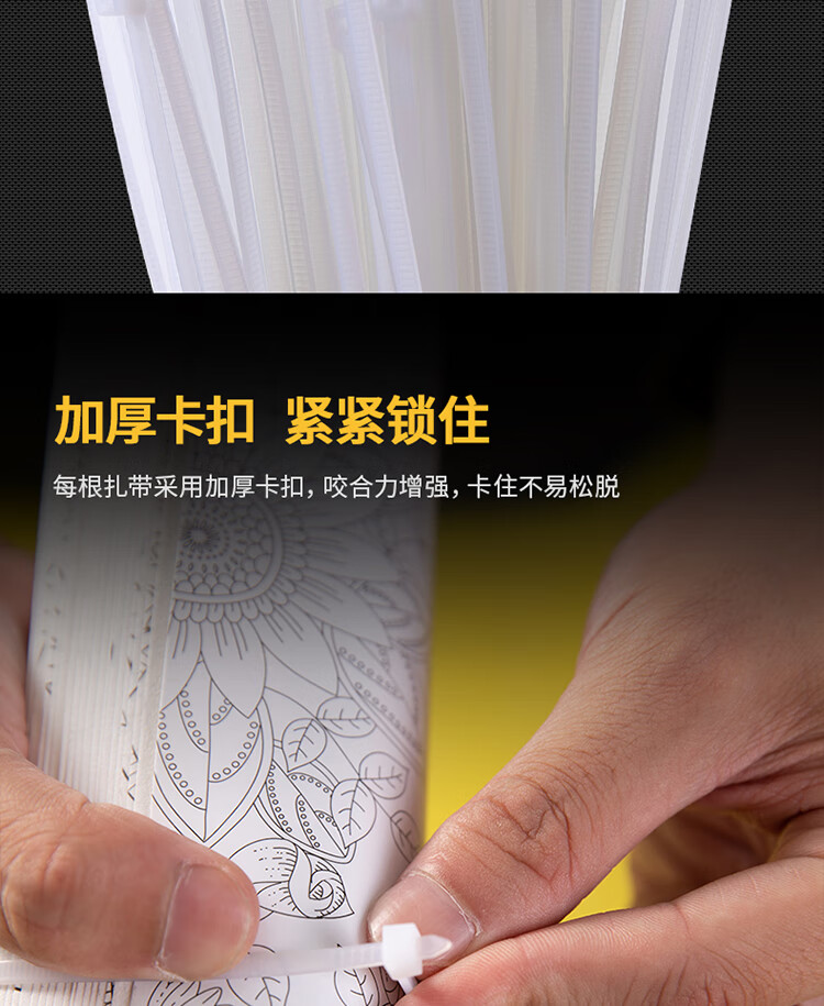 得力DL9446 自锁式尼龙扎带 理线带 扎线 4.0*250mm 白色 200支装 SKU:yzwhyp103499