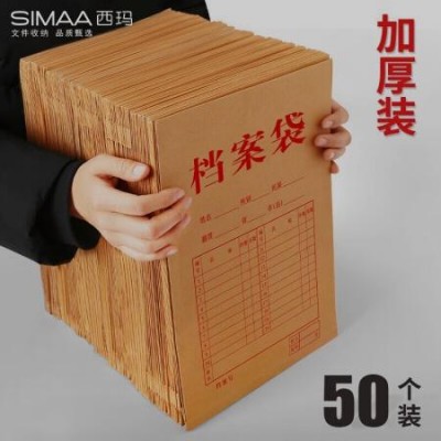 西玛(SIMAA)50只加厚A4牛皮纸档案袋侧宽4cm 标书合同文件资料袋 办公用品180 6517 SKU:yzwhyp103527
