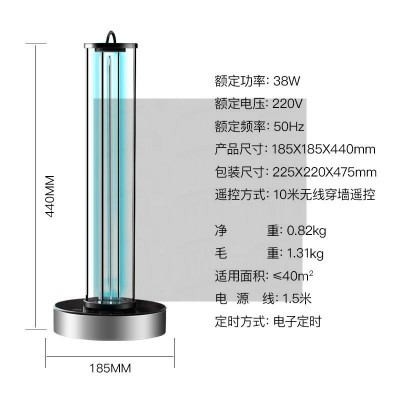雪莱特 38W紫外线消毒灯 家用杀菌消毒灯 移动式幼儿园宠物室内除异味甲醛除螨杀菌灯 UV带臭氧双重消毒 L8 SKU:yzwhyp304970