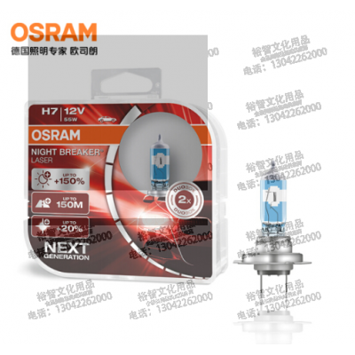 欧司朗(OSRAM)H7汽车灯泡 大灯近光灯远光灯卤素灯 新一代激光夜行者H7 【增亮150% 2支装】 12V 55W SKU:yzwhyp304984