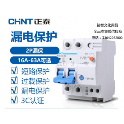 正泰(CHNT) 空气开关 带漏电保护器 家用空开总闸漏保 断路器63a漏电保护空气开关NBE7LE 2P 63A SKU:yzwhyp103637