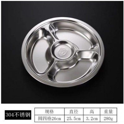 幼儿园304不锈钢圆形餐盘(特厚26CM四格)