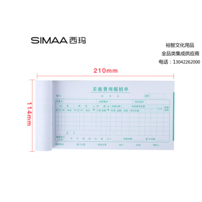 西玛(SIMAA) 通用版差旅费用报销单 210*114mm 10本/包 50页/本 SKU:yzwhyp103670
