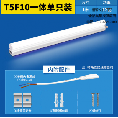 雷士(NVC)E-LED T5F10 雷士照明1.0米LED灯管T5无影灯管一体化T5支架套装12W暖黄光3000K SKU:yzwhyp305231