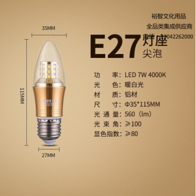 雷士(NVC)E-NLED032 LED灯泡尖泡 7瓦E27大螺口 光源节能灯 暖白光4000K 5只 SKU:yzwhyp305233