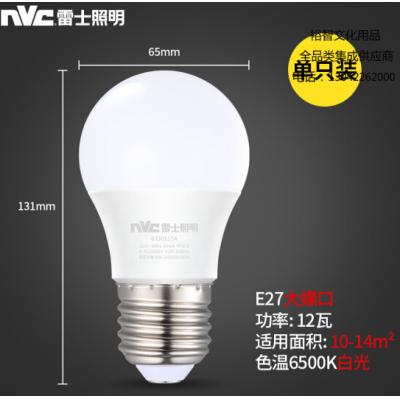 雷士(NVC) 雷士照明 LED球泡 家用商用大功率 高亮节能正白光6500K灯泡 12W SKU:yzwhyp305291