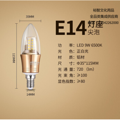 首页 > 建筑建材 > 电工电料 > 雷士(NVC)E-NLED0329W-6500K E14 LED灯泡尖泡 9瓦E14小螺口 光源节能灯 正白光6500K 金色 5只装 SKU:yzwhyp305325