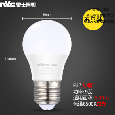 首页 > 建筑建材 > 电工电料 > 雷士 (NVC )E-NLED0039W-6500K LED灯泡球泡 大功率光源 高亮节能 9瓦白光6500K E27(5只装) SKU:yzwhyp305329