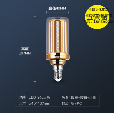 首页 > 建筑建材 > 电工电料 > 雷士( NVC)EGLYP1346 超亮led灯泡E14小螺口玉米灯蜡烛泡家用光源节能灯 9W三档调色 SKU:yzwhyp305336