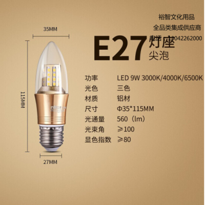 首页 > 建筑建材 > 电工电料 > 雷士(NVC)E-NLED0339W-4000K E27 LED灯泡尖泡 9瓦E27大螺口家用商用大功率 光源节能灯三档调光( 5只装) SKU:yzwhyp305338