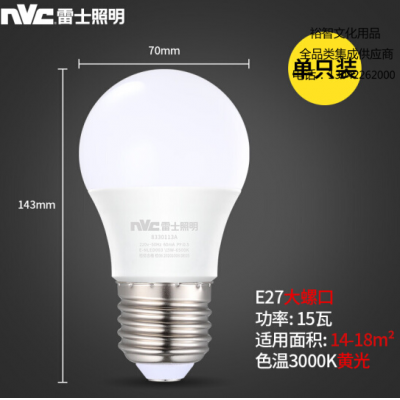 雷士(NVC) 雷士照明 LED球泡 家用商用大功率 高亮节能暖黄光3000K灯泡 15W SKU:yzwhyp305479