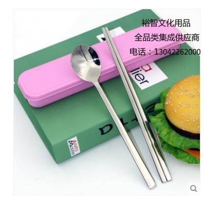 津御商厨YC-3M实心304不锈钢筷子勺子套装 5套/组 学生便携餐具盒旅行筷勺三件儿童长柄 SKU:yzwhyp305754