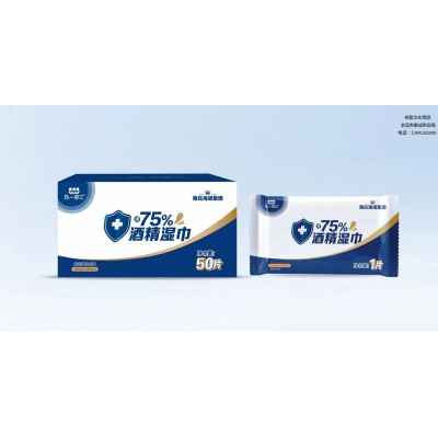 海氏海诺 75%酒精湿巾 一次性消毒酒精棉片大号 单片独立包装 18*15cm*50片 便携小包装免洗洗手消毒液湿巾 SKU:yzwhyp305864
