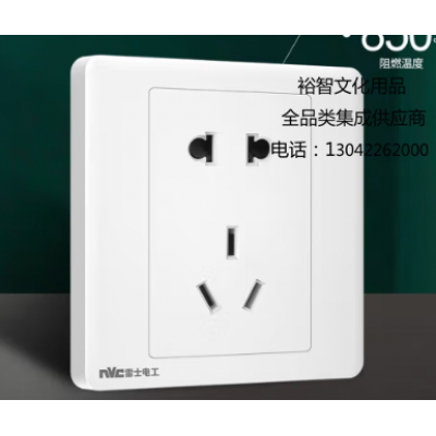 雷士电工(NVC)开关插座 五孔插座86型10A 斜5孔二三插暗装墙壁开关面板 N05B14X白色 SKU:yzwhyp305898
