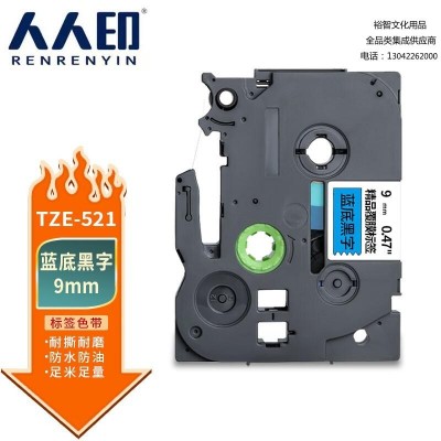 人人印标签带 9mm蓝底黑字TZe-521标签色带 适用兄弟标签打印机brother标签打印纸 AZE-521/WZE-521 SKU:yzwhyp305913