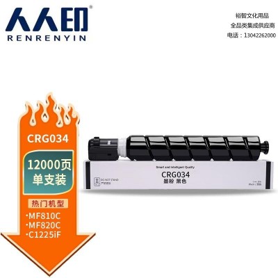 人人印 CRG034粉盒 适用佳能MF810Cdn硒鼓 MF820C C1225 激光打印机彩色墨盒 【黑色】12000页 标容 SKU:lfhc500020