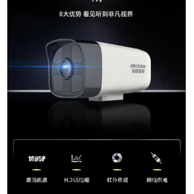 海康威视 DS-IPC-B12HV2-IA 摄像头 200万监控 POE高清带录音红外夜视50米监控器 8mm