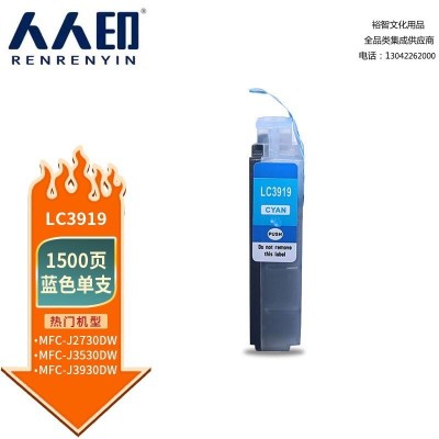 首页 > 办公用品 > 墨水盒 > 人人印 LC3919蓝色墨盒 适用兄弟Brother MFC-J2330DW MFC-J2730DW MFC-J3530DW MFC-J3930DW打印机墨盒墨水 SKU:yzwhyp305949