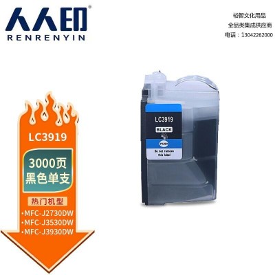 首页 > 办公用品 > 墨水盒 > 人人印 LC3919黑色墨盒 适用兄弟Brother MFC-J2330DW MFC-J2730DW MFC-J3530DW MFC-J3930DW打印机墨盒墨水 SKU:yzwhyp305952